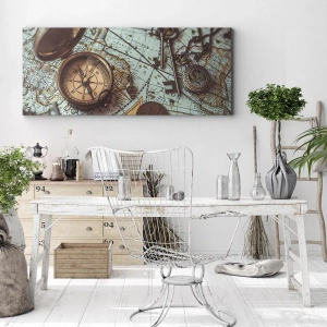- Denna målning i retrostil föreställer en kompass, nycklar och en gammal karta. Det är den perfekta dekorationen för äventyrs- och resentusiaster.