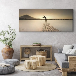 Canvastavla - Bild på duk - Man på en flotte vid solnedgången - 70x50cm - Före avkoppling - Modern väggdekoration för vardagsrum och sovrum ARTTOR