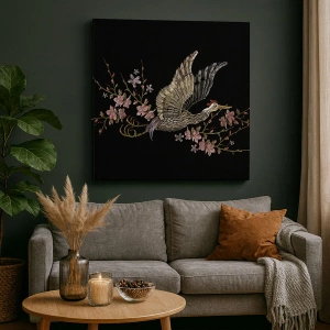Canvastavla - Bild på duk - Exotisk, broderad fågel - 30x30 cm