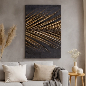 "Tropiskt guld" är en unik målning som subtilt kombinerar modernitet och lyx. Det gyllene tropiska lövet, som sticker ut mot den djupsvarta bakgrunden, skapar en komposition full av elegans och kontrast. Målningen, tryckt på duk som mäter 70x50 cm, passar perfekt i moderna interiörer, särskilt i en glamorös eller minimalistisk stil.