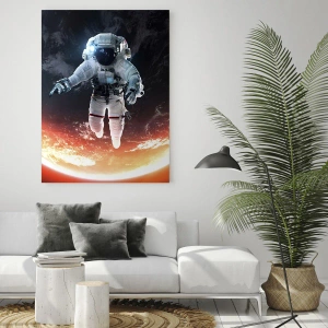 - Målningen föreställer en astronaut som svävar i rymden mot en bakgrund av en upplyst planet. De kontrasterande nyanserna svart och orange skapar en futuristisk och inspirerande bild av det oändliga kosmos.