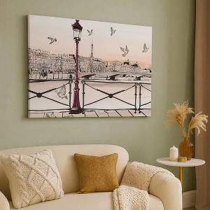 Canvastavla - Bild på duk - Över Paris tak - 45x80 cm