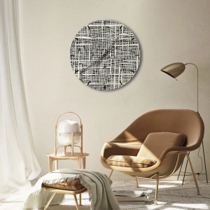 Väggklocka - Klocka på glas - Vävd komposition - 30x30 cm