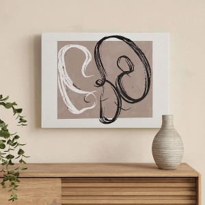 - En konstnärlig målning med en svartvit abstraktion mot en beige bakgrund. Ett minimalistiskt och elegant motiv, perfekt för moderna och stilfulla interiörer.