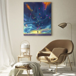 Denna målning kommer att fungera bra i vardagsrum, kontor eller tonårsrum och ge dem en unik karaktär. Dess positiva och energiska komposition kan bli en inspiration för handling och drömmar. "Na niebieska Wiatr" är ett verk som ger en unik känslomässig laddning till alla interiörer.