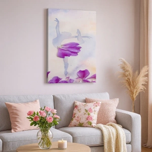 Denna canvastavla är ett utmärkt alternativ för dig som vill berika sin interiör med konstelement inspirerade av naturen och delikatess. "Dansare i en blommig klänning mot pastellbakgrund" är en dekoration som ger harmoni, glädje och unik stil till din interiör.