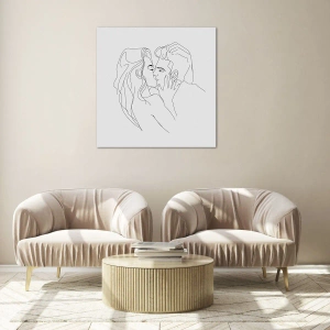 Glastavla - Bild på glas - En minimalistisk teckning av ett par i en romantisk kyss - 70x50cm - Med samma streck - Modern väggdekoration för vardagsrum och sovrum ARTTOR