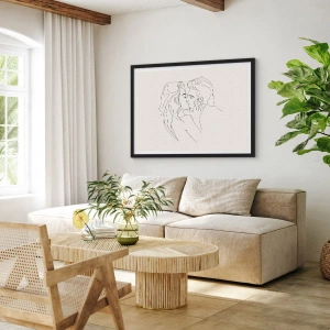 - Denna poster föreställer en minimalistisk teckning av ett förälskat par, utförd i fina linjer. Perfekt som en diskret inredningsdekoration. Produkten inkluderar en svart ram som mäter 50x70 cm.