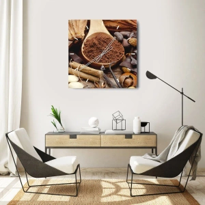 Väggklocka - Klocka på glas - En sked kakao omgiven av kryddor och chokladbitar - 30x30cm - Bäst för sorgen - Modern väggdekoration för vardagsrum, kök och sovrum ARTTOR
