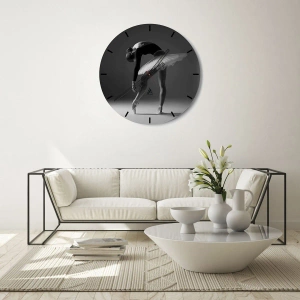 - Denna runda väggklocka på 30x30 cm har en elegant svartvit bild av en ballerina i en klassisk danspose. En snygg och minimalistisk design som betonar rörelsens elegans och subtilitet.