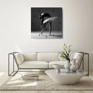 Väggklocka - Klocka på glas - Svartvit ballerina i en klassisk danspose - 30x30cm - Bella ballerina - Modern väggdekoration för vardagsrum, kök och sovrum ARTTOR