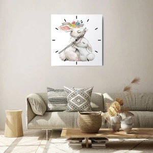 Väggklocka - Klocka på glas - Två gosiga kaniner, den större med en blomsterkrona - 30x30cm - Alltid bäst hos mamma - Modern väggdekoration för vardagsrum, kök och sovrum ARTTOR