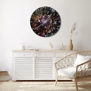 Väggklocka - Klocka på glas - Närbild av blomblad i mörka nyanser - 30x30cm - Blommande ungdom - Modern väggdekoration för vardagsrum, kök och sovrum ARTTOR