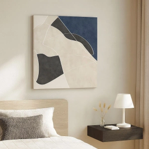 - Geometrisk abstraktion i nyanser av beige och marinblått är en subtil dekoration som ger harmoni och elegans till inredningen. Perfekt för ett vardagsrum eller sovrum, det ger en konstnärlig touch till rummet.