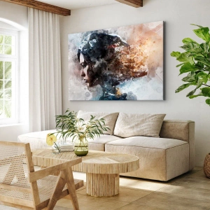 Canvastavla - Bild på duk - Berättelse om en tjej med en stad i bakgrunden - 30x30 cm