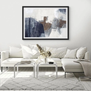 Affisch i svart ram - Blåbruna former - 70x50 cm