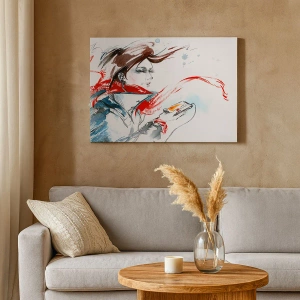 Duken är uppspänd i ramen. Sidor och kanter är täckta med tryck och skapar en fortsättning av bilden. Bilden är klar att hängas på väggen. Varje produkt har en ögla som är fastsatt i ramen samt en monteringssats (skruv + plugg).