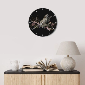 Väggklocka - Klocka på glas - Exotisk, broderad fågel - 40x40 cm