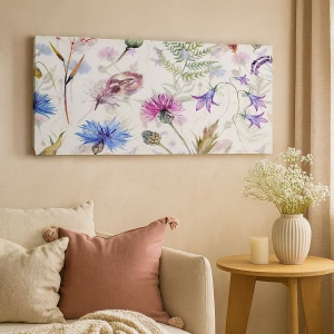 Canvastavla - Bild på duk - Akvarellblommor och örter på en vit bakgrund i herbariumstil - 70x50cm - Polska örter - Modern väggdekoration för vardagsrum och sovrum ARTTOR
