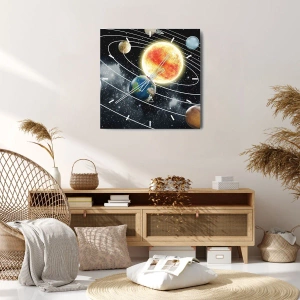 Väggklocka - Klocka på glas - Solsystemet med solen och planetbanorna synliga - 30x30cm - Rymddans - Modern väggdekoration för vardagsrum, kök och sovrum ARTTOR