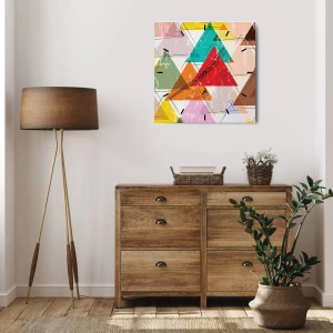 Väggklockan "Geometrisk Vintage" kombinerar modern estetik med en touch av retro. Urtavlan har en komposition av färgglada trianglar i geometrisk stil, förstärkt med en subtil åldrad effekt. Detta motiv ger en unik karaktär och harmoni till interiörer.