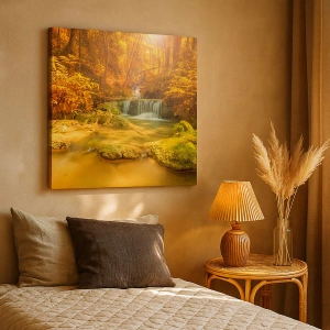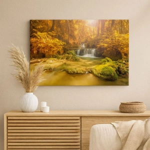Canvastavla - Bild på duk - Skogkaskad i gult - 80x120 cm