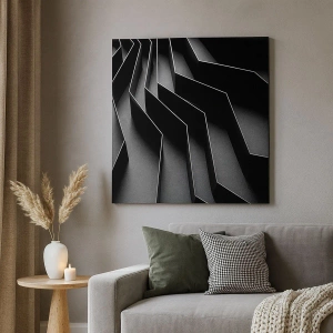 Canvastavla "Rumslig ordning" är en unik komposition som kombinerar harmoni och precision. Den avbildar en svartvit abstraktion med geometriska strukturer, som bildar ett dynamiskt och sammanhängande mönster. Tack vare djupet och skuggorna får bilden en rumslig karaktär, vilket skapar ett tredimensionellt intryck.