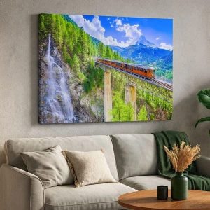 Canvastavla - Bild på duk - Järnväg till Alperna - 45x80 cm