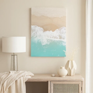 Canvastavla - Bild på duk - Fågelperspektiv på en strand med turkost vatten och mjuka vågor - 70x50cm - Smekande beröring - Modern väggdekoration för vardagsrum och sovrum ARTTOR