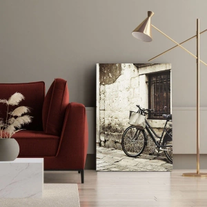 Tillbaka till det förflutna är en charmig canvastavla som transporterar oss till de atmosfäriska hörnen av den gamla staden. Den avbildar en klassisk cykel lutad mot en stenmur med ett fönster och en retrodörr. Kompositionen fångar andan av nostalgi, historia och lugn, vilket skapar en unik inredning. Fina detaljer, som stenarnas struktur och subtila skuggor, betonar scenens äkthet.