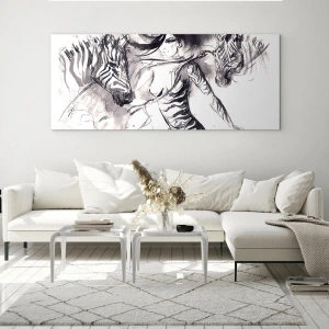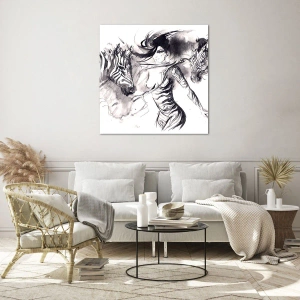 Glastavla - Bild på glas - Dansar med zebror - 50x70 cm
