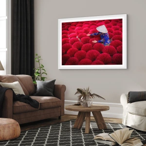 Affisch i vit ram - På ett risfält - 60x60 cm