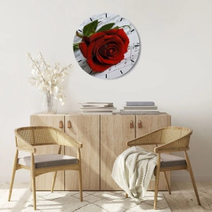 Väggklocka - Klocka på glas - Känslornas musik i scharlakansröd - 40x40 cm