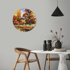 - Denna väggklocka har en höstskog, full av färgglada löv och varmt ljus. Perfekt för naturälskare och pittoreska landskap.