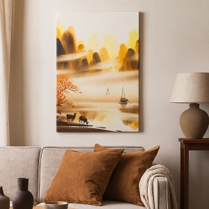 Duken är uppspänd i ramen. Sidor och kanter är täckta med tryck och skapar en fortsättning av bilden. Bilden är klar att hängas på väggen. Varje produkt har en ögla som är fastsatt i ramen samt en monteringssats (skruv + plugg).