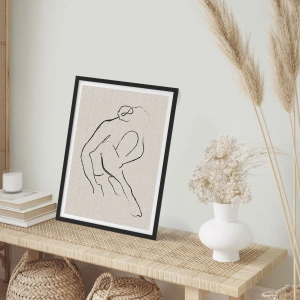 "Intim skiss" är en unik poster som visar en minimalistisk skiss av en kvinnlig silhuett. Fina, böljande linjer beskriver figurens subtila kontur och skapar en raffinerad och elegant komposition. Kontrasten mellan den svarta linjen och den neutrala beige bakgrunden ger verket en tidlös karaktär.
