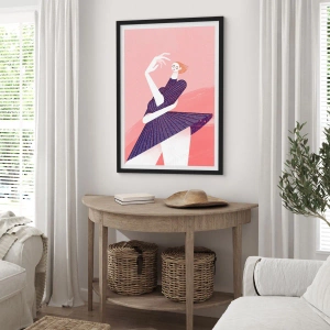 En modern poster som visar en abstrakt kvinnlig silhuett i en dynamisk pose. En komposition full av elegans och uttrycksfullhet.