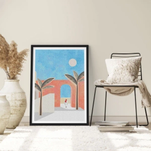 Affisch i svart ram - Minimalistiskt landskap med palmer och en båge - 50x70cm - En arabisk dag - Modern väggdekoration för vardagsrum och sovrum ARTTOR