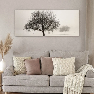 Väggkonst - Vinterdröm - Träd i ett snöigt fält omgivet av dimma