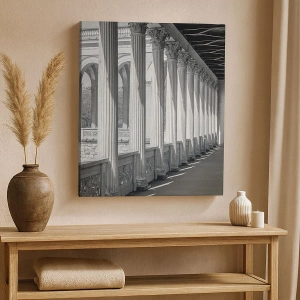 Canvastavla - Bild på duk - Klassisk kolonnad i svartvitt - 70x50cm - Solig arkad - Modern väggdekoration för vardagsrum och sovrum ARTTOR