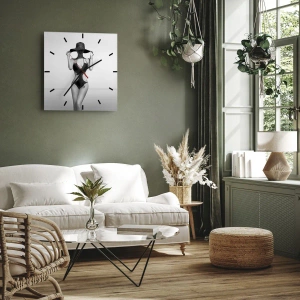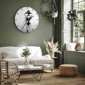 Klockan är tillverkad av glas med 4mm tjocklek. Klockans utförandeteknik överensstämmer med säkerhetsklassen 2B2 enligt standarden PN-EN 12600:2004 vilket garanterar slagtålighet. Klocka på glas är klar för upphängning - är försedd med metallögla fastsatt på klockans baksida samt en distans av skum som justerar avståndet mellan klockan och väggen. Klockan har en tyst steglös mekanism som strömförsörjs med 1,5V AA batteri (batteriet ingår inte).