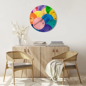 Färgglada cirklar i akvarellstil är det perfekta valet för konstälskare och modern inredning. Denna klocka kommer att ge en glädjefylld touch till din inredning och betona dess individualitet.