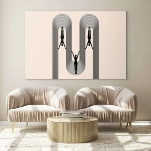 Glastavla - Bild på glas - Svarta silhuetter av figurer upphängda i rytmiska bågar - 70x50cm - Upp och ner - Modern väggdekoration för vardagsrum och sovrum ARTTOR