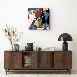 Väggklocka - Klocka på glas - Kubistiskt samtal - 40x40 cm