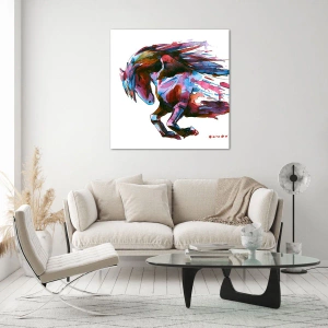 Inspirationen till detta verk var naturens styrka och skönhet, fångad i hästens symbolik. Den abstrakta formen och de intensiva färgerna ger kompositionen en modern karaktär som passar perfekt in i en mängd olika inredningsdesigner. Detta verk är fullt av energi och harmoni, vilket glädjer både djurälskare och samtida konstälskare.