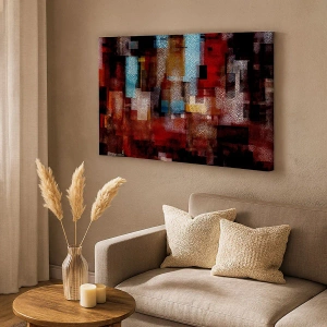 Canvastavla - Bild på duk - Geometrisk abstraktion i intensiva röda nyanser - 70x50cm - Blandat och mixat - Modern väggdekoration för vardagsrum och sovrum ARTTOR