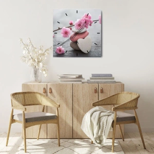 Väggklocka - Bliss with Cherry Blossom - Rosa körsbärsblommor på en gren med dekorativa stenar
