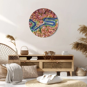 Väggklocka - Klocka på glas - Slingrande väg genom skogen - 30x30 cm
