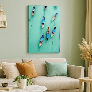 Duken är uppspänd i ramen. Sidor och kanter är täckta med tryck och skapar en fortsättning av bilden. Bilden är klar att hängas på väggen. Varje produkt har en ögla som är fastsatt i ramen samt en monteringssats (skruv + plugg).