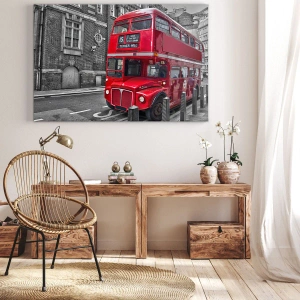 Motivet på den röda dubbeldäckarbussen är inte bara en dekoration, utan också en symbol för London och det brittiska arvet. Det är ett utmärkt val för dem som uppskattar tidlösa ikoner och klassiska urbana motiv. Detta tryck kan också vara en unik present till resenärer och älskare av brittisk kultur.